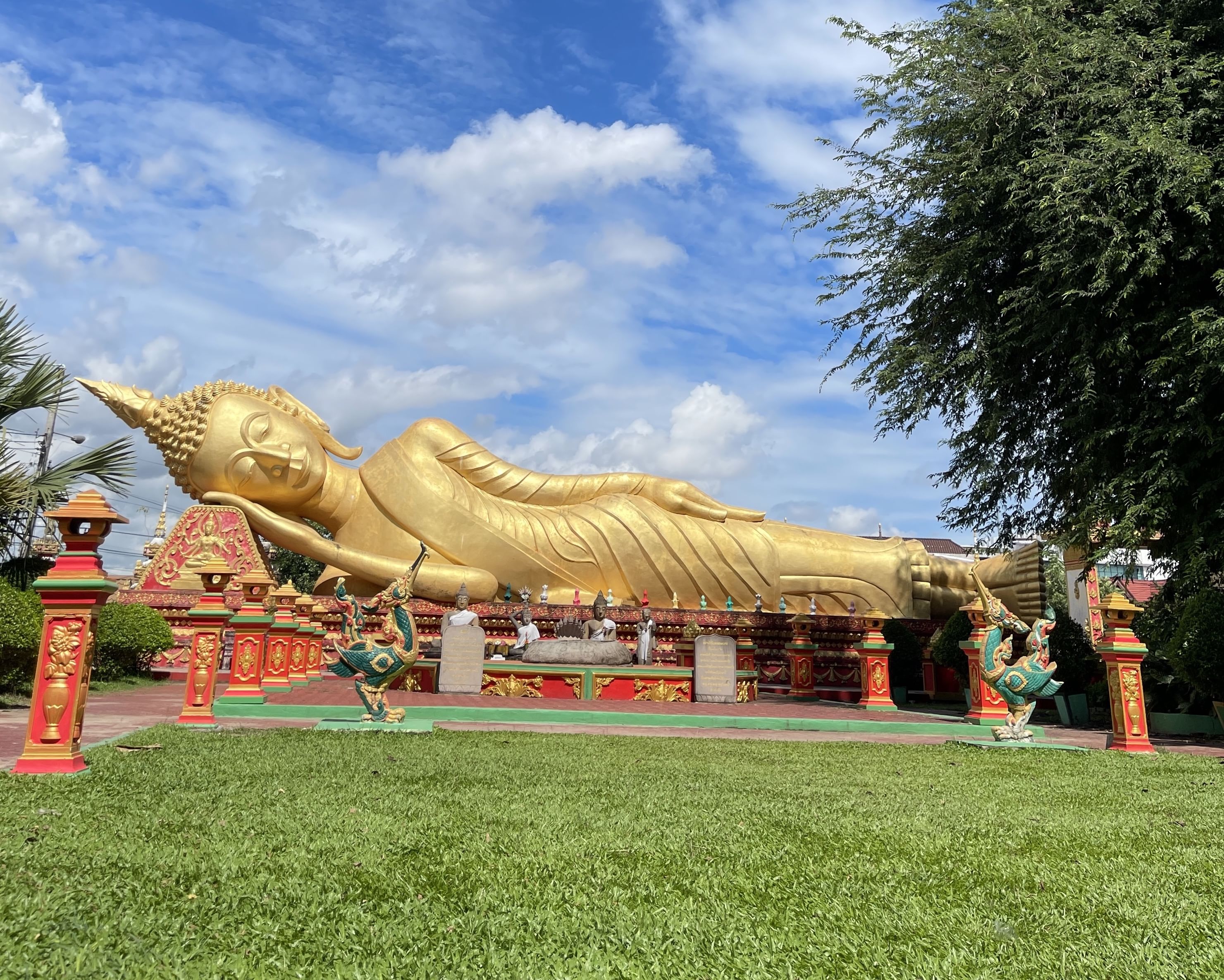 Next, visit the iconic Patuxay Monument, also known as the “Victory Gate.” Built in the 1960s, this triumphal arch resembles the Arc de Triomphe in Paris but with distinct Lao design details. From the top, enjoy panoramic views of Vientiane’s tree-lined boulevards and the surrounding cityscape.